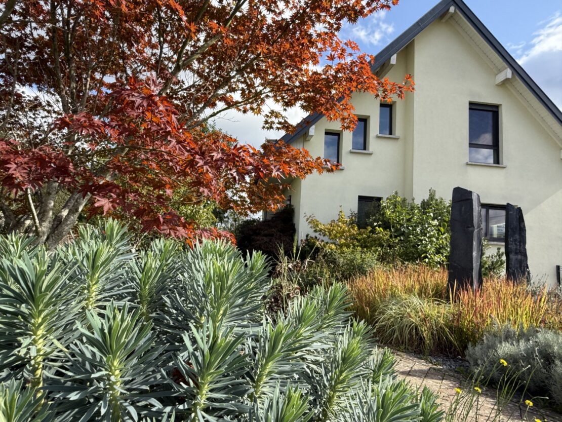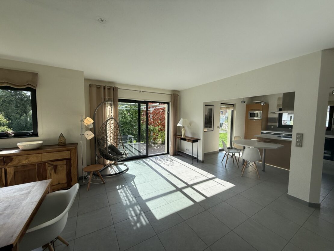 Beautiful recent house in a cul-de-sac, small residential neighborhood. Ideal for a family with children, pets... Large living space with open kitchen. Approx. 140 m² (on the ground), access to terrace and garden. 4 bedrooms, 2 bathrooms. Basement with garage for 2 cars, workshop, storage room. Electric and underfloor heating. Photovoltaic solar panels. Garden with terrace and magnificent view, surrounded by nature!