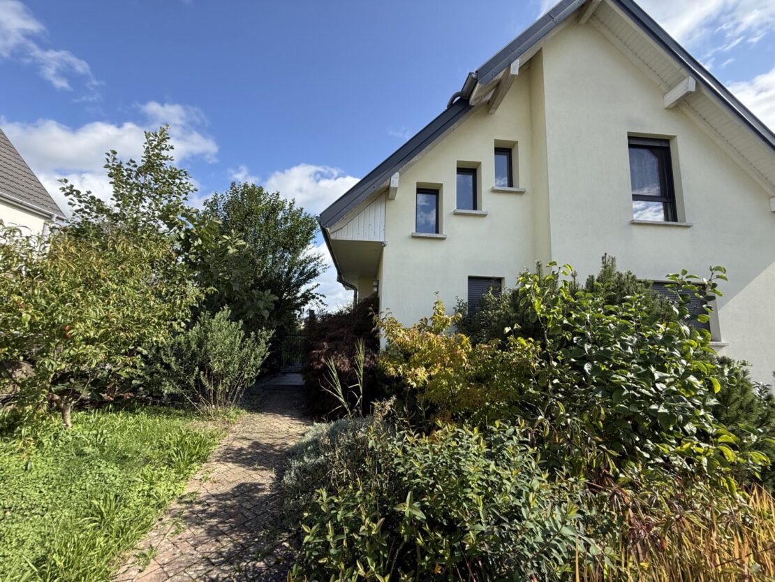 Neuwiller proche Allschwil, Biel-Benken, Schönenbuch, Leymen et Hagenthal le Bas. Descendez sans effort en vélo en quelques min à Bâle...! Magnifique villa env. 140 m² au sol / très grand espace de vie avec cheminée, plusieurs accès à l'extérieur, cuisine US ouverte / 4 chambres, 1 salle d'eau, 1 salle de bain. Situation très au calme, en bordure de la nature, impasse!