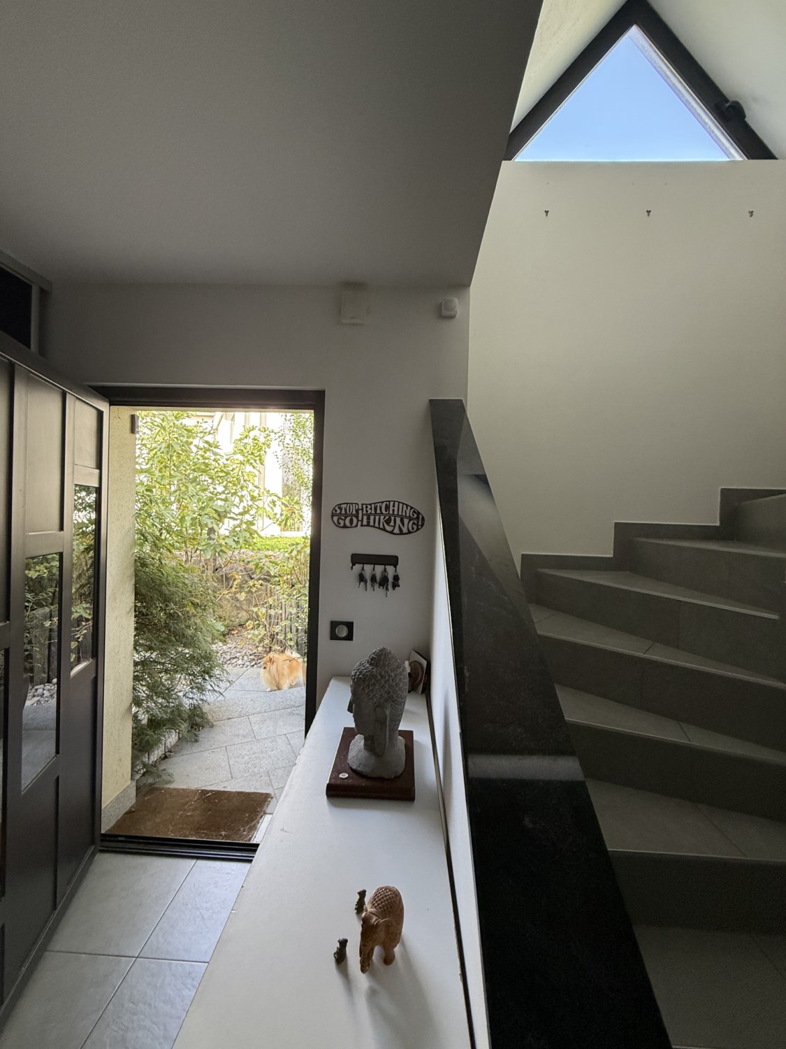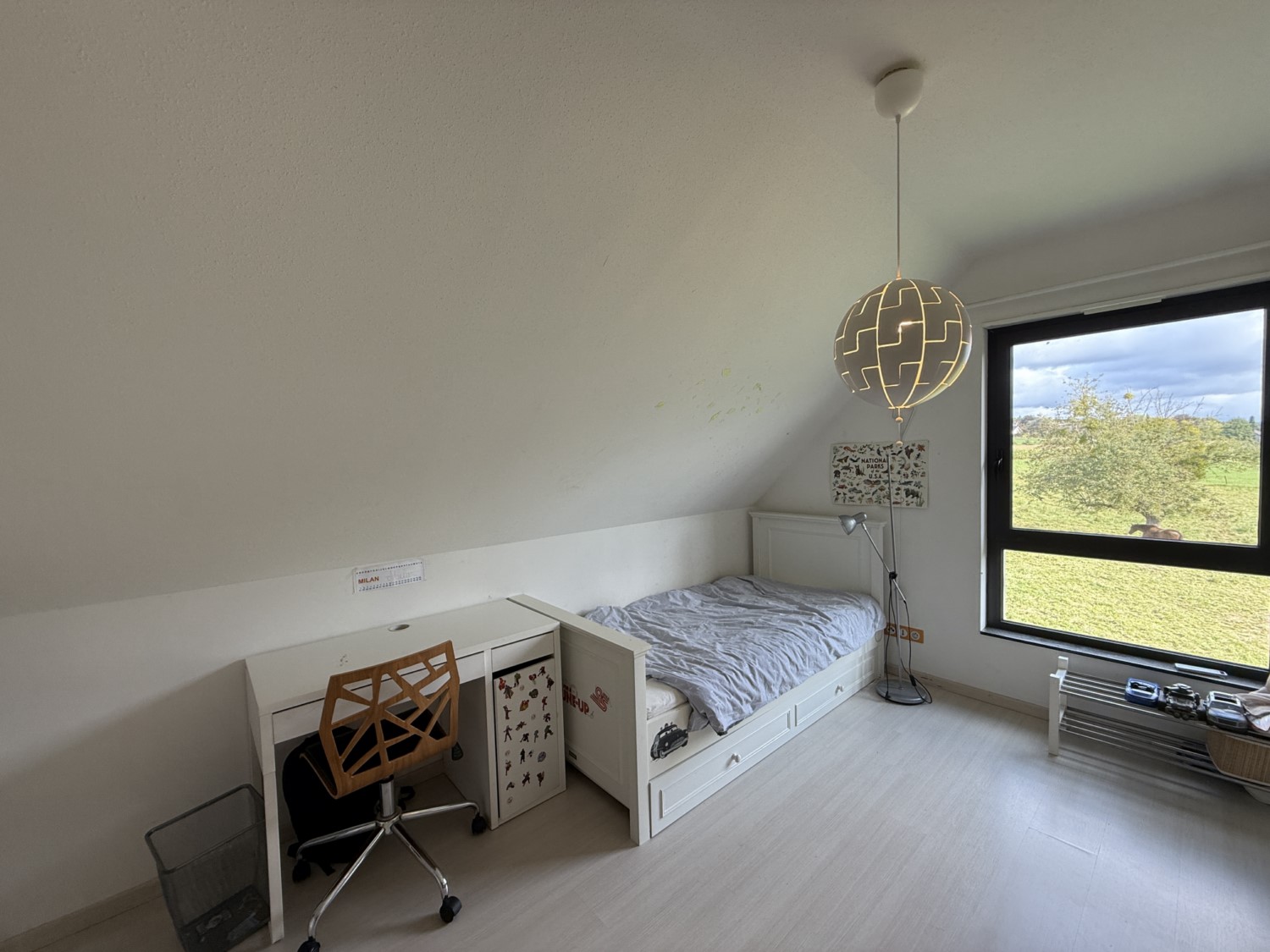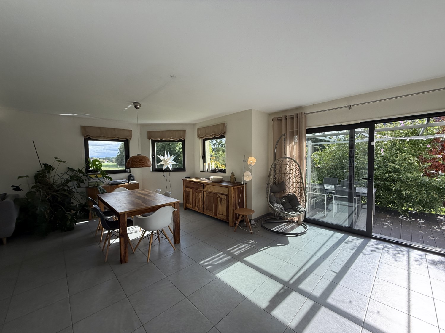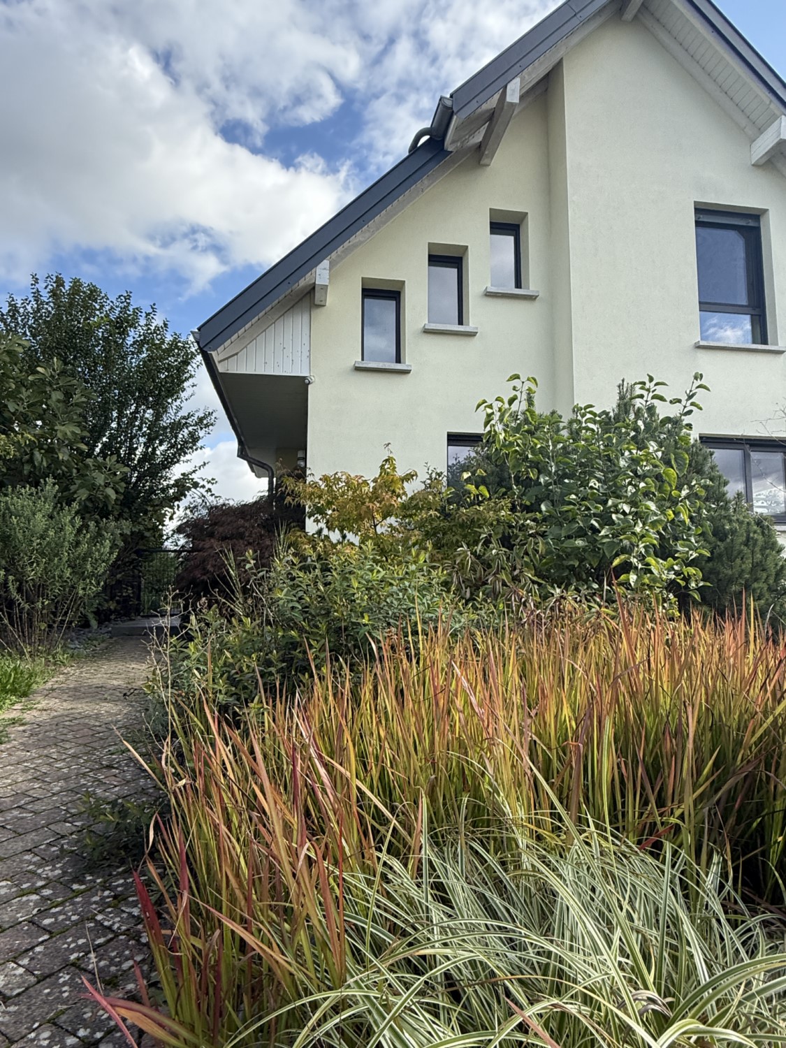 Modernes, Funktionales Haus mit ca. 125 m² Wohnfläche, eingebettet in einer grünen Oase. Großer Wohnbereich mit offener Küche und Zugang zum Garten und zur Terrasse. 4 Schlafzimmer, 2 Badezimmer. Untergeschoss mit großer Garage, Heizungsraum (elektrische Fußbodenheizung), Werkstatt, Abstellraum. Photovoltaische Module. Schöner Garten mit zwei Terrassen, sehr schöner freier Blick auf die Felder und Welder. Keine Durchgangsstraße, in einer Sackgasse gelegen!