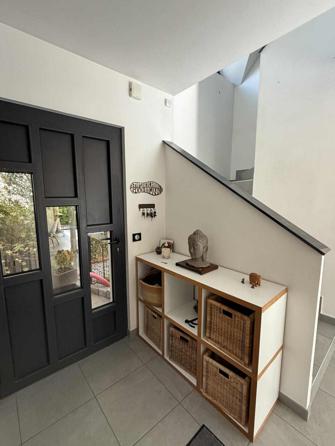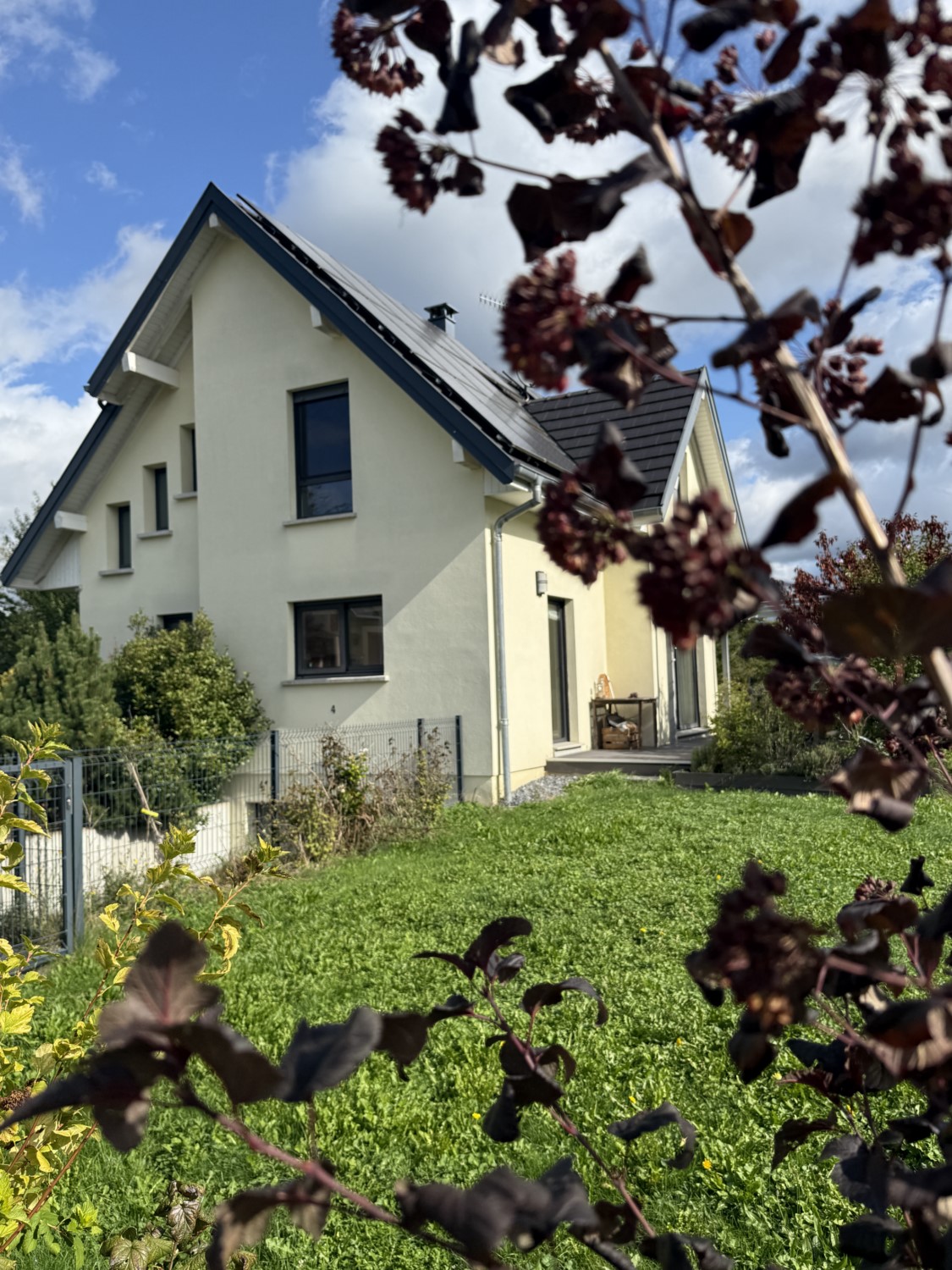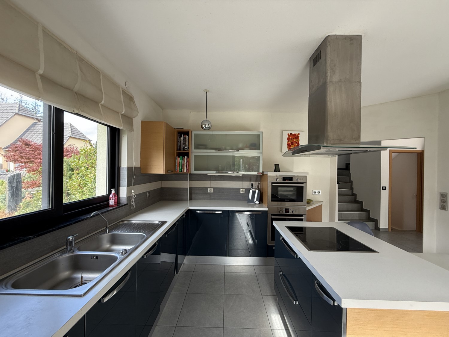 Beautiful recent house in a cul-de-sac, small residential neighborhood. Ideal for a family with children, pets... Large living space with open kitchen. Approx. 140 m² (on the ground), access to terrace and garden. 4 bedrooms, 2 bathrooms. Basement with garage for 2 cars, workshop, storage room. Electric and underfloor heating. Photovoltaic solar panels. Garden with terrace and magnificent view, surrounded by nature!