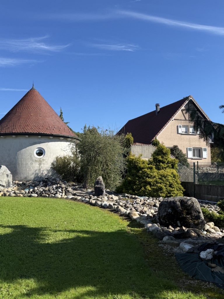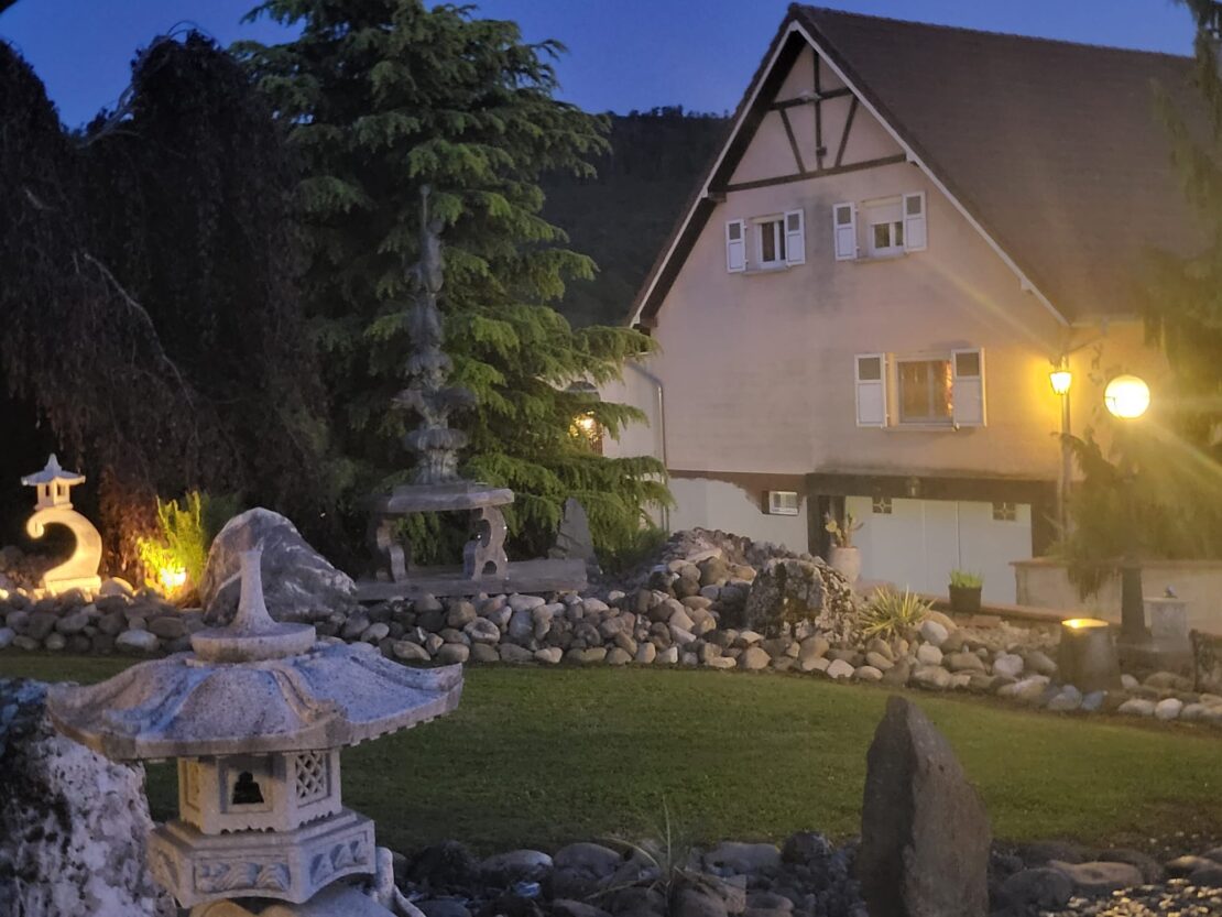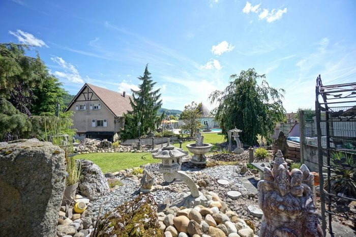 Sect. Ferrette (à 10 min), Koestlach, Moernach, Mooslargue, à env. 30-45 min de Délémont, Bâle: Belle maison env. 195 m² / grand espace de vie 40 m² avec poêle à pellets, sortie sur la terrasse, cuisine séparée avec accès extérieur / 3 chambres, 1 salle de bain, 1 WC / 1er étage env. 120 m² dont 81 m² prêts à décorer - grand potentiel ! / Situation idyllique, vrai park like!