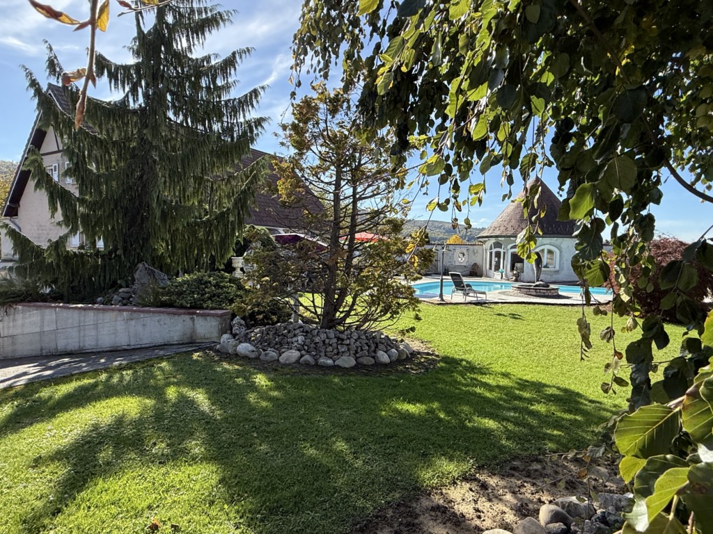 Wunderschöne Villa in einem bewaldeten und angelegten Park von ca. 34 Ar. Schöner Wohnbereich mit Pelletofen, separate Küche. 2 Schlafzimmer im Erdgeschoss mit 1 Badezimmer. 1. Stock bereit zur Dekoration, Möglichkeit, weitere Schlafzimmer und Badezimmer zu schaffen. Großes Potenzial. Untergeschoss: Waschküche/Heizungsraum (Elektroheizung + Pellets), Weinverkostungsraum, Werkstatt, Abstellraum/Voliere, Garage mit elektrischem Tor für 2 Autos. Garten ca. 34 Ar, mehrere Terrassen, englischer Garten mit 6 Volieren, Swimmingpool, großer Pavillon ca. 20 m² mit schwenkbarem Grill. Fantastische und seltene Lage!