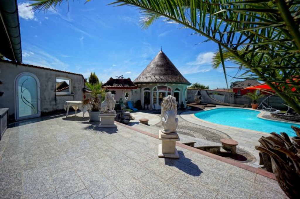 Magnificent villa approx. 195 m² in a wooded and landscaped park approx. 3400 m². Great potential for extension, 1st floor ready to decorate. Possibility of adding 3 more bedrooms and 1 bathroom. Beautiful living space with pellet stove, 2 bedrooms, 1 bathroom. Separate kitchen with outside access. Large basement with wine cellar, garage for 2 cars. Electric and pellet heating. Outstanding garden with several terraces, swimming pool, pavilion with bar, barbecue area, several aviaries, parking spaces. All enclosed and wooded. A rare gem! Ideal for a family with children and pets, but also for someone looking to create vacation rentals.