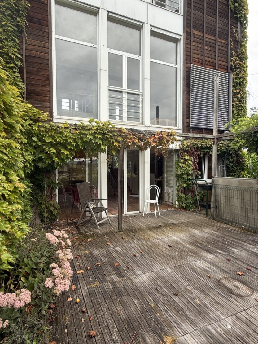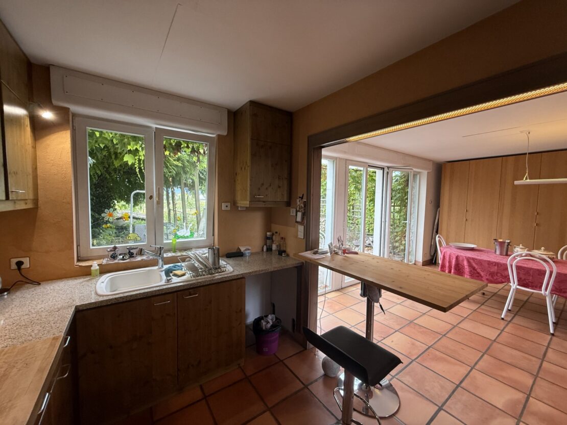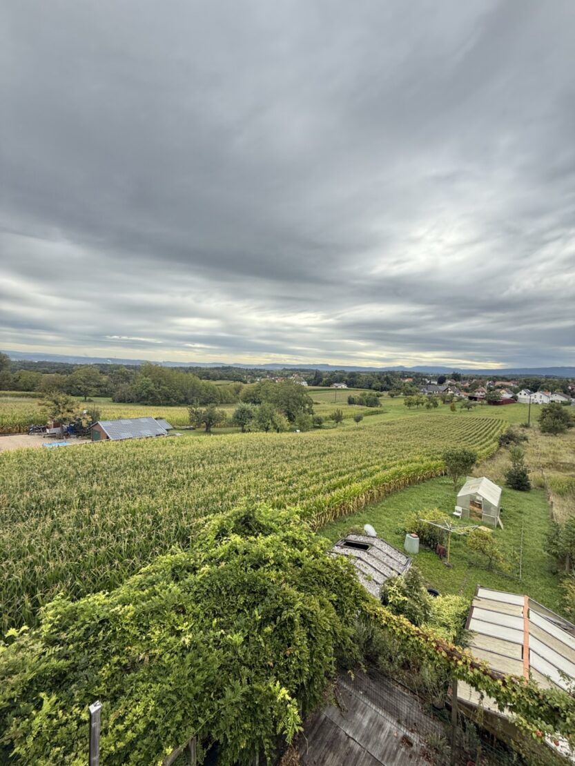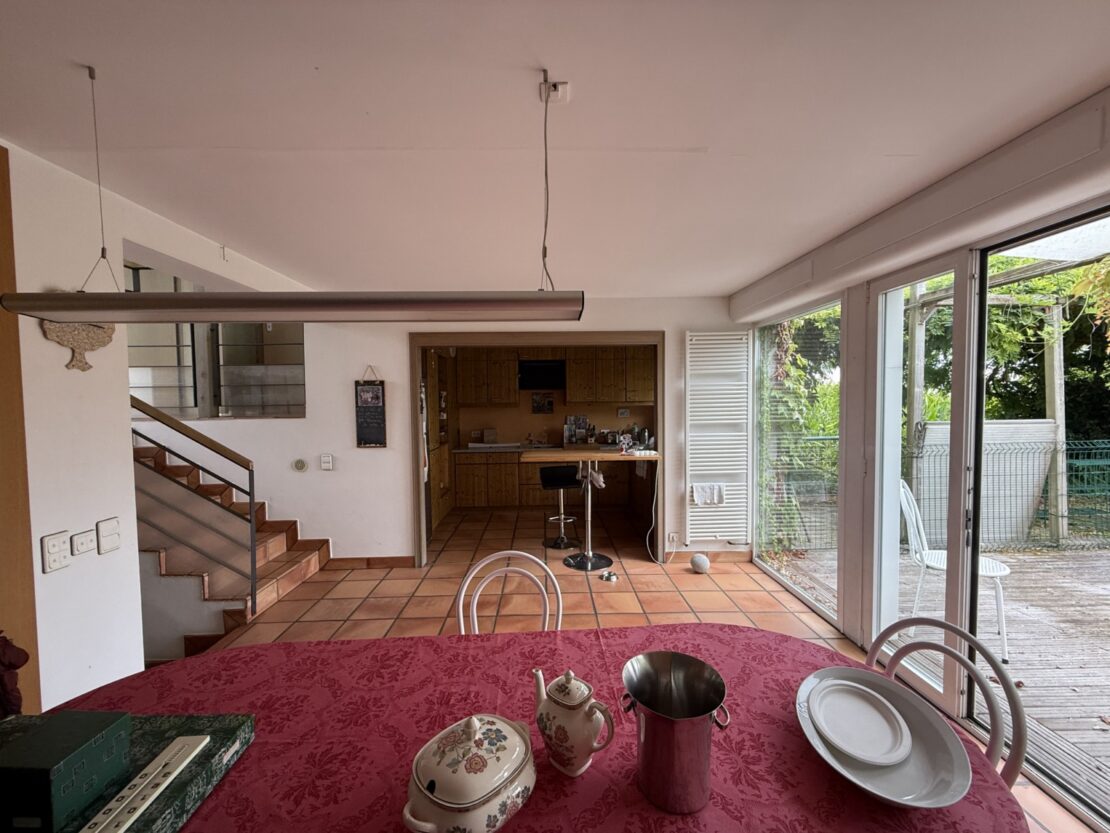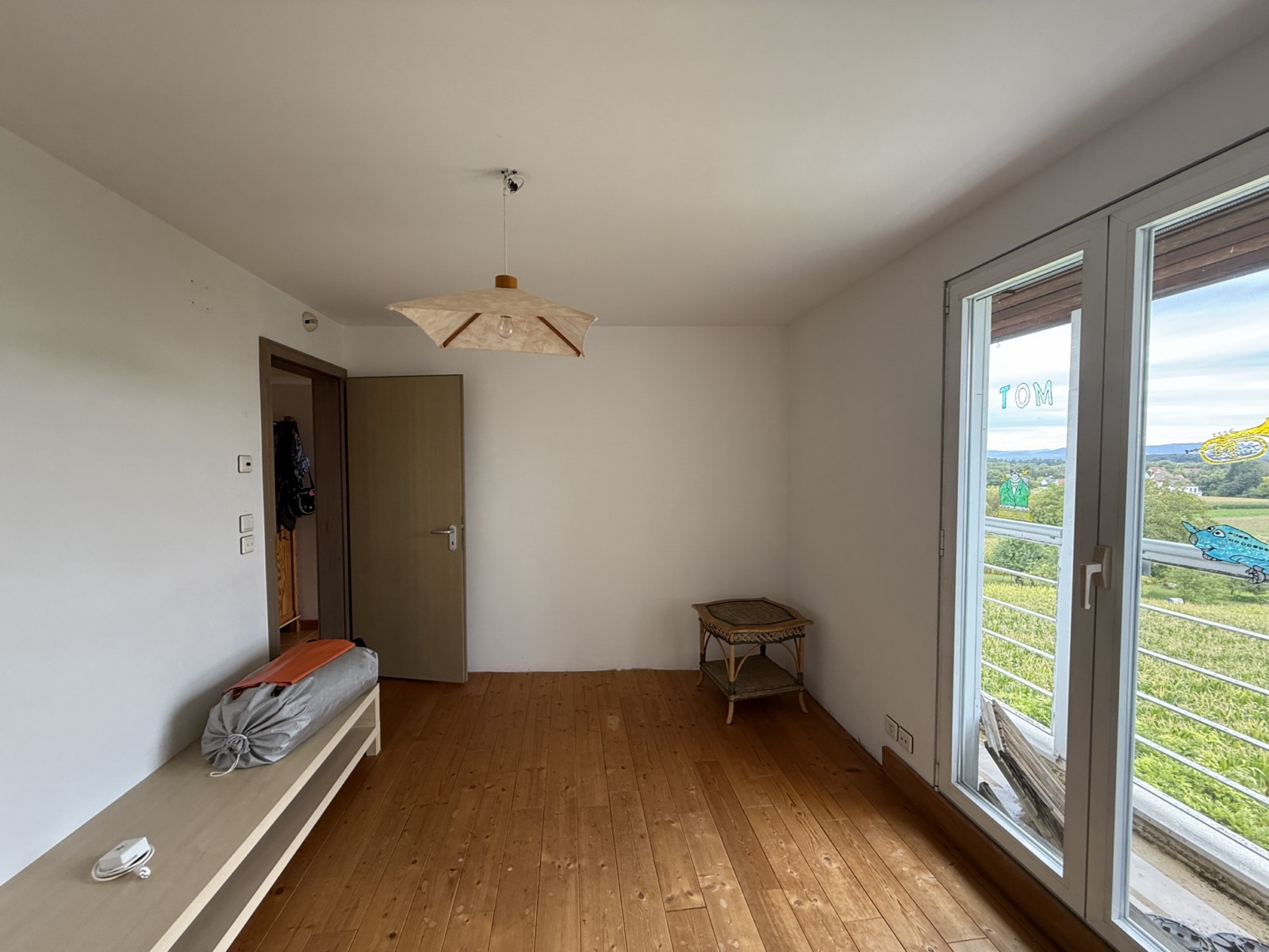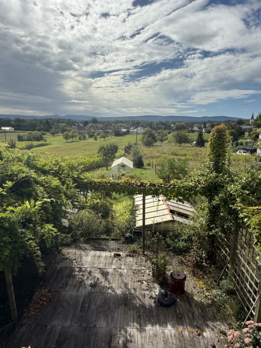 Are you looking for an elegant house close to Basel? Here is your architect designed timber-framed house, with a living area of approximately 145 m², full of charm, character and space. Ideal for a family with children, or for artists such as painters or musicians... You have a large terrace, a beautiful plot of approximately 12 acres with the possibility of acquiring an additional 40 acres, including 10 acres of building land, a large terrace, greenhouses, a biotope and an international neighbourhood. Here is your new home with beautiful finishes, large windows, high ceilings, lots of space and light. Your house has 4 bedrooms including 2 with balcony , 2 bathrooms and 2 WCs. A magnificent living space with XXL windows and an open kitchen with dining area and wood-burning stove! A magnificent setting with a view of the village! Quiet, close to nature, near the forest, ideal for hiking, jogging and cycling, and of course suitable for children, cats and dogs. You have good infrastructure just a few minutes away (shops, banks, schools, etc.), 10 minutes from one of the best schools in Alsace (École de Mission, Blotzheim). International neighbourhood.