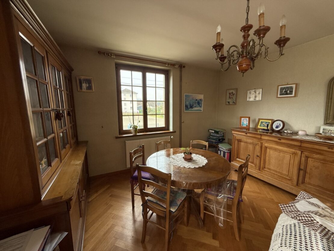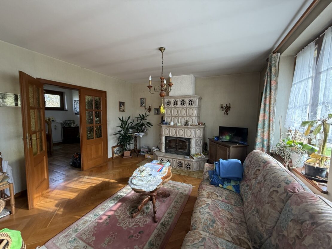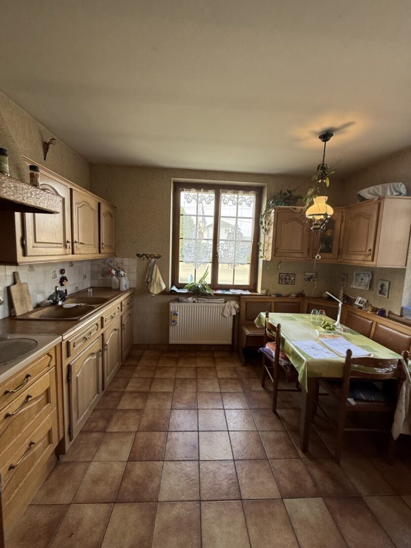 Ein schönes, gepflegtes Haus mit einer Fläche von 145 m² und einem Grundstück und Garten von ca. 2600 m² wartet auf seine neuen Besitzer. Eingang mit Veranda, 5 große Zimmer mit hohen Decken und Parkettboden, eine schöne rustikale Küche und ein Wohnzimmer mit Kachelofen, ein ausbaubarer Dachboden. Waschküche, Weinkeller, Heizungsraum mit Stadtgas- und Holzheizung + Photovoltaikmodule. Dieses gepflegte Haus verfügt über 3 Nebengebäude: 1 große Scheune mit Stall und verschiedenen Lagerräumen, die auf 2 Ebenen ausgebaut werden können, und eine weitere Scheune mit Werkstätten und Dachboden. Ein toller Garten mit verschiedenen Obstbäumen und Gemüsegarten für Liebhaber der Gartenarbeit. Außerdem steht Ihnen ein Mehrzweck-Schuppen zur Verfügung, ideal für Wohnmobile. Ein wunderschönes Anwesen, auf dem Sie bequem parken, basteln, Feste organisieren können!