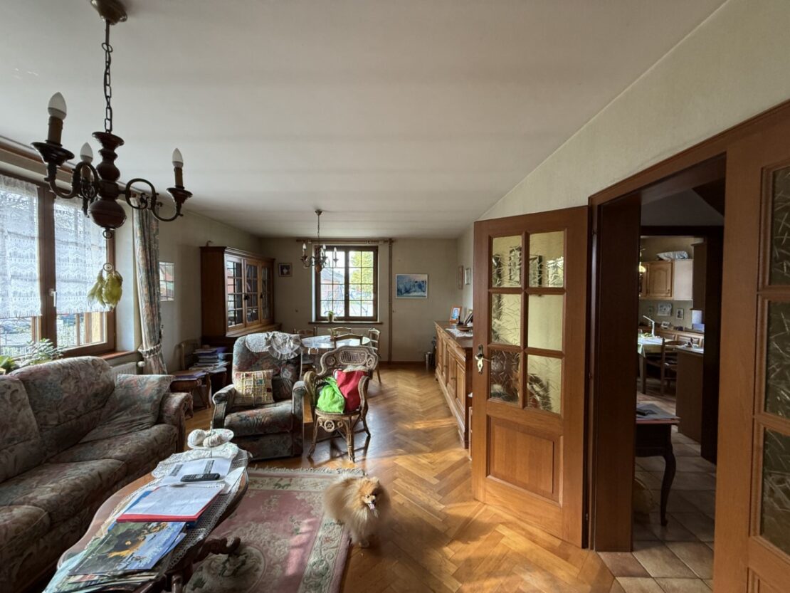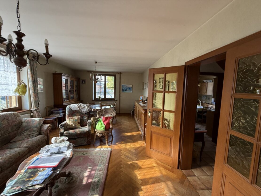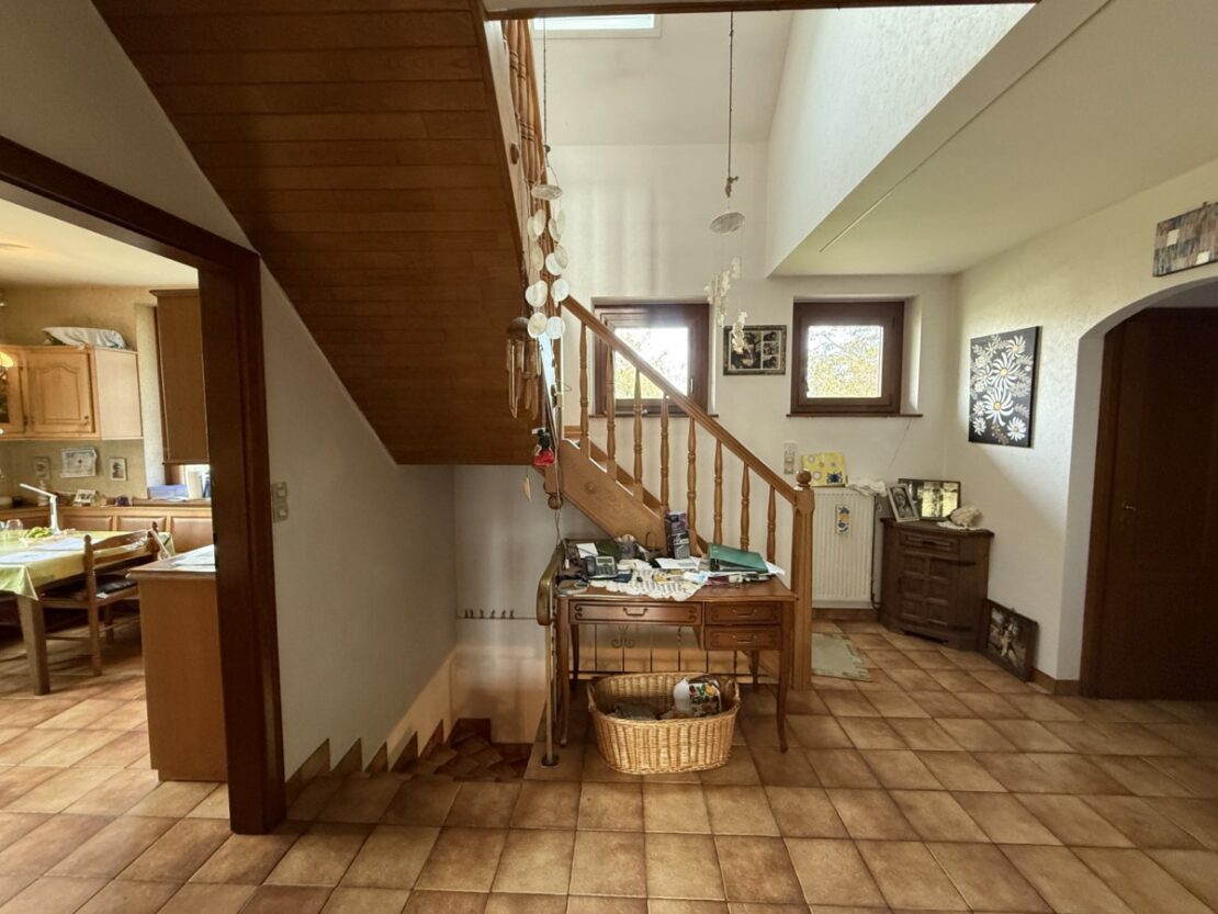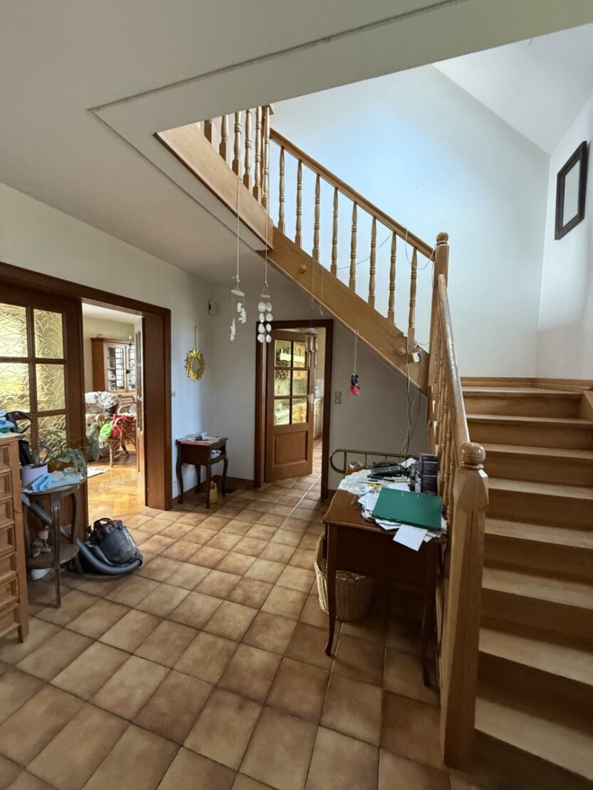 Ein schönes, gepflegtes Haus mit einer Fläche von 145 m² und einem Grundstück und Garten von ca. 2600 m² wartet auf seine neuen Besitzer. Eingang mit Veranda, 5 große Zimmer mit hohen Decken und Parkettboden, eine schöne rustikale Küche und ein Wohnzimmer mit Kachelofen, ein ausbaubarer Dachboden. Waschküche, Weinkeller, Heizungsraum mit Stadtgas- und Holzheizung + Photovoltaikmodule. Dieses gepflegte Haus verfügt über 3 Nebengebäude: 1 große Scheune mit Stall und verschiedenen Lagerräumen, die auf 2 Ebenen ausgebaut werden können, und eine weitere Scheune mit Werkstätten und Dachboden. Ein toller Garten mit verschiedenen Obstbäumen und Gemüsegarten für Liebhaber der Gartenarbeit. Außerdem steht Ihnen ein Mehrzweck-Schuppen zur Verfügung, ideal für Wohnmobile. Ein wunderschönes Anwesen, auf dem Sie bequem parken, basteln, Feste organisieren können!