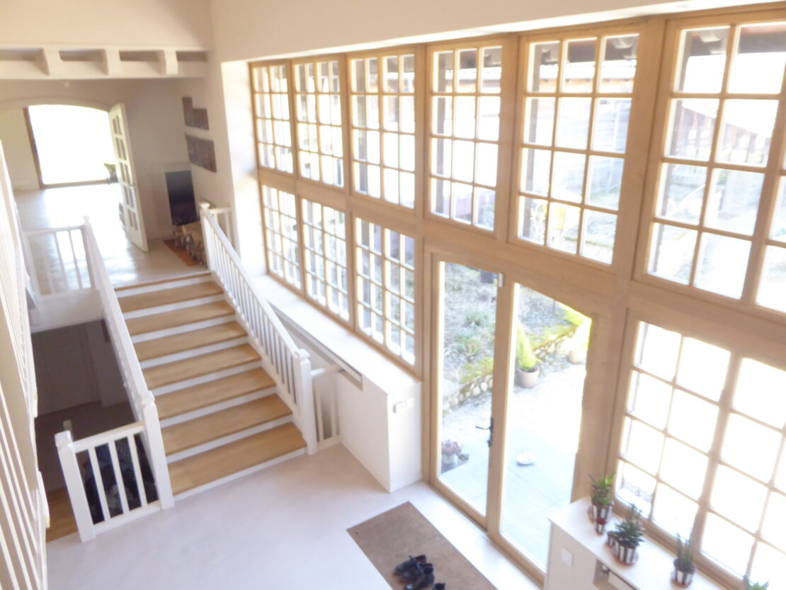 Propriété d'exception et de qualité avec excellent volume. Ambiance et cadre uniques! Grand hall d'entrée, poutres apparentes, parquet chêne massif, béton ciré. Grandes fenêtres & baies vitrées, luminosité et espace, grandes terrasses couvertes. Vue panoramique et dégagée sur de longs kilomètres sur les champs, forêts et montagnes.