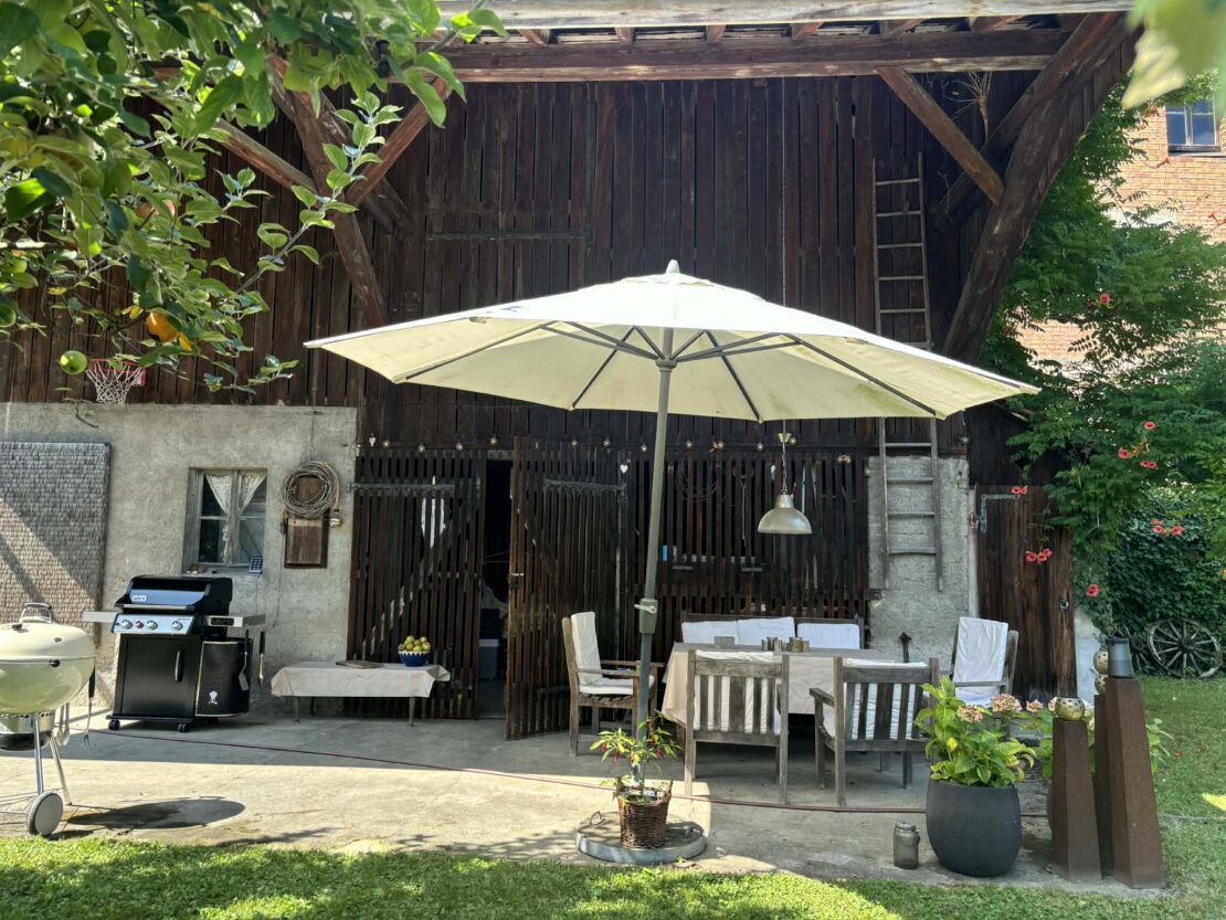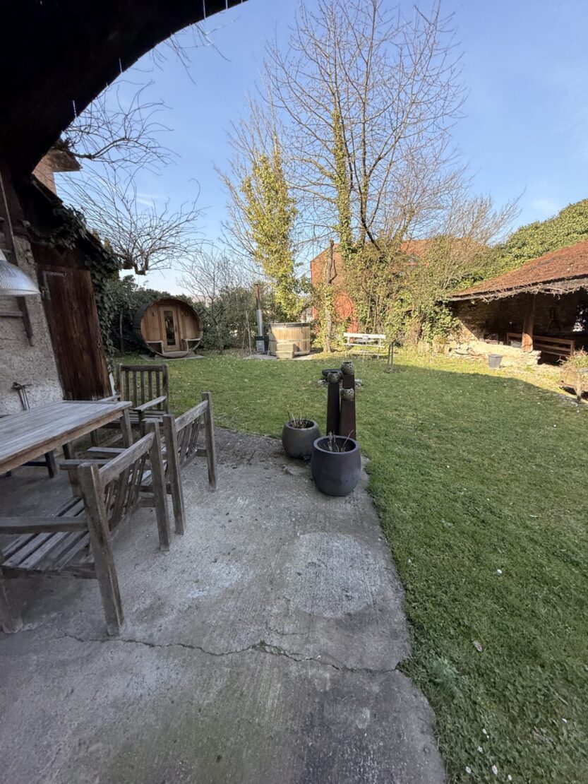 A magnificent property that combines the charm of a 300-year-old house with the comfort and luxury of modern living. Approximately 210 sqm of living space and an adjoining barn, expertly renovated using ecological materials. The house offers a spacious living area of around 50 m² as well as a kitchen with a dining area of approximately 20 m². It features a total of 6 rooms, including a master bedroom, and 2 bathrooms. High ceilings, original wooden plank floors, numerous windows, a wood-burning heating system, and several fireplaces give the house a unique atmosphere – a perfectly executed “old-meets-new” renovation. The attic is easily convertible and offers additional potential. The basement, with high ceilings, includes a cellar, a wine cellar, a boiler room (wood heating with fireplace and solar panels for hot water), and provides direct access to the outside. The property also includes a garage and a beautifully landscaped garden of approximately 11 ares. It features a stunning covered terrace, sunny areas, a sauna, a Nordic bath, and an outbuilding with extra storage space and an attic. The adjoining barn offers significant development potential (2–3 apartments possible). Centrally located in Leymen: schools, shops, restaurants, and Tram line 10 to Basel are all within walking distance. A truly unique house with character in perfect condition – ideal for a family, guests, pets, and nature lovers. Also perfectly suited for a B&B, Airbnb, offices, or freelance activities. In short: an exceptional property with 6 rooms, 2 bathrooms, a basement, garden, garage, and terraces, located right on the Swiss border. Write the next chapter of your story in this special property. A rare opportunity in the region – a true little paradise!