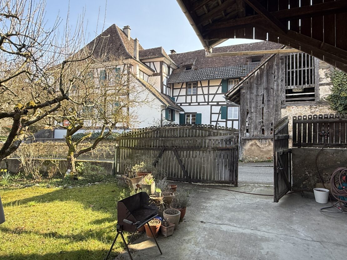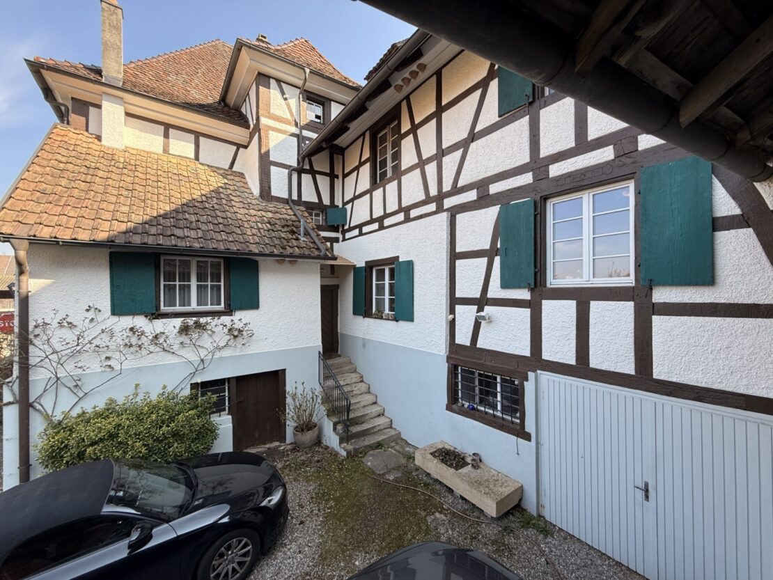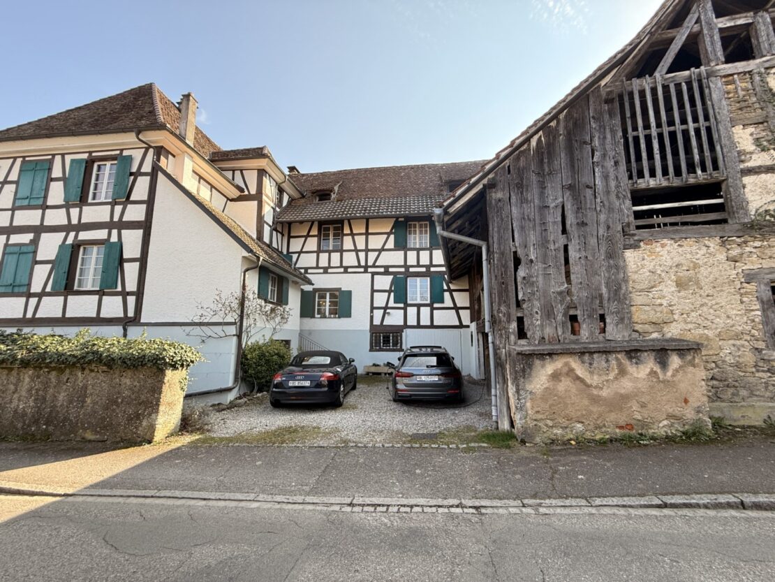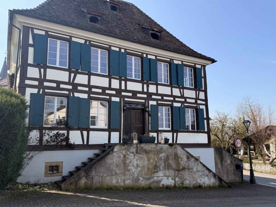 Herrschaftliches Fachwerkhaus im Kern von Leymen mit ca. 210 m² Wohnfläche und angrenzender Scheune, fachmännisch mit ökologischen Materialien renoviert. Das Haus bietet einen großzügigen Wohnbereich von ca. 50 m² sowie eine Küche mit Essbereich von ca. 20 m². Es verfügt über insgesamt 6 Zimmer, darunter eine Masterbedroom, sowie 2 Badezimmer. Hohe Decken, originalem Holzdielenboden, zahlreiche Fenster, eine Holzheizung und mehrere Kamine verleihen dem Haus eine besondere Atmosphäre – eine rundum gelungene „Alt-Neu“-Renovierung. Der Dachboden ist leicht ausbaubar und bietet ein zusätzliches Potenzial. Das Untergeschoss mit hohen Decken umfasst einen Keller, einen Weinkeller, einen Heizraum (Holzheizung mit Kamin sowie Solaranlage für Warmwasser) und bietet einen direkten Zugang nach außen. Zur Immobilie gehören zudem eine Garage sowie ein wunderschön angelegter und gepflegter Garten mit ca. 11 Ar Fläche. Dieser verfügt über eine herrliche überdachte Terrasse, sonnige Bereiche, eine Sauna, ein nordisches Bad sowie ein Nebengebäude mit zusätzlichem Stauraum und Dachboden. Die angrenzende Scheune bietet ein enormes Ausbaupotenzial (2 bis 3 Wohnungen möglich). Die Lage ist zentral in Leymen: Schule, Geschäfte, Restaurants sowie die Tramlinie 10 in Richtung Basel sind bequem zu Fuß erreichbar. Ein wirklich einzigartiges Haus mit viel Charakter in perfektem Zustand – ideal für eine Familie, für Gäste, Haustiere und Naturliebhaber. Auch bestens geeignet für ein B&B, Airbnb, Büros oder freiberufliche Tätigkeiten. Kurz gesagt: Eine außergewöhnliche Immobilie mit 6 Zimmern, 2 Bädern, Keller, Garten, Garage und Terrassen, die Sie an der Schweizer Grenze erwartet. Schreiben Sie das nächste Kapitel Ihrer Geschichte in diesem besonderen Anwesen. Eine seltene Gelegenheit in der Region – ein echtes kleines Paradies!
