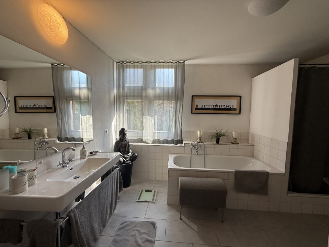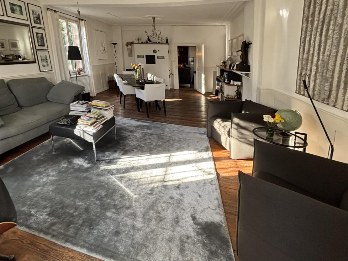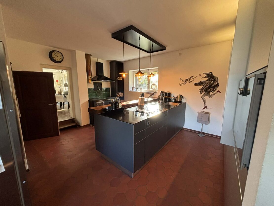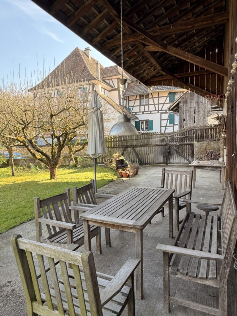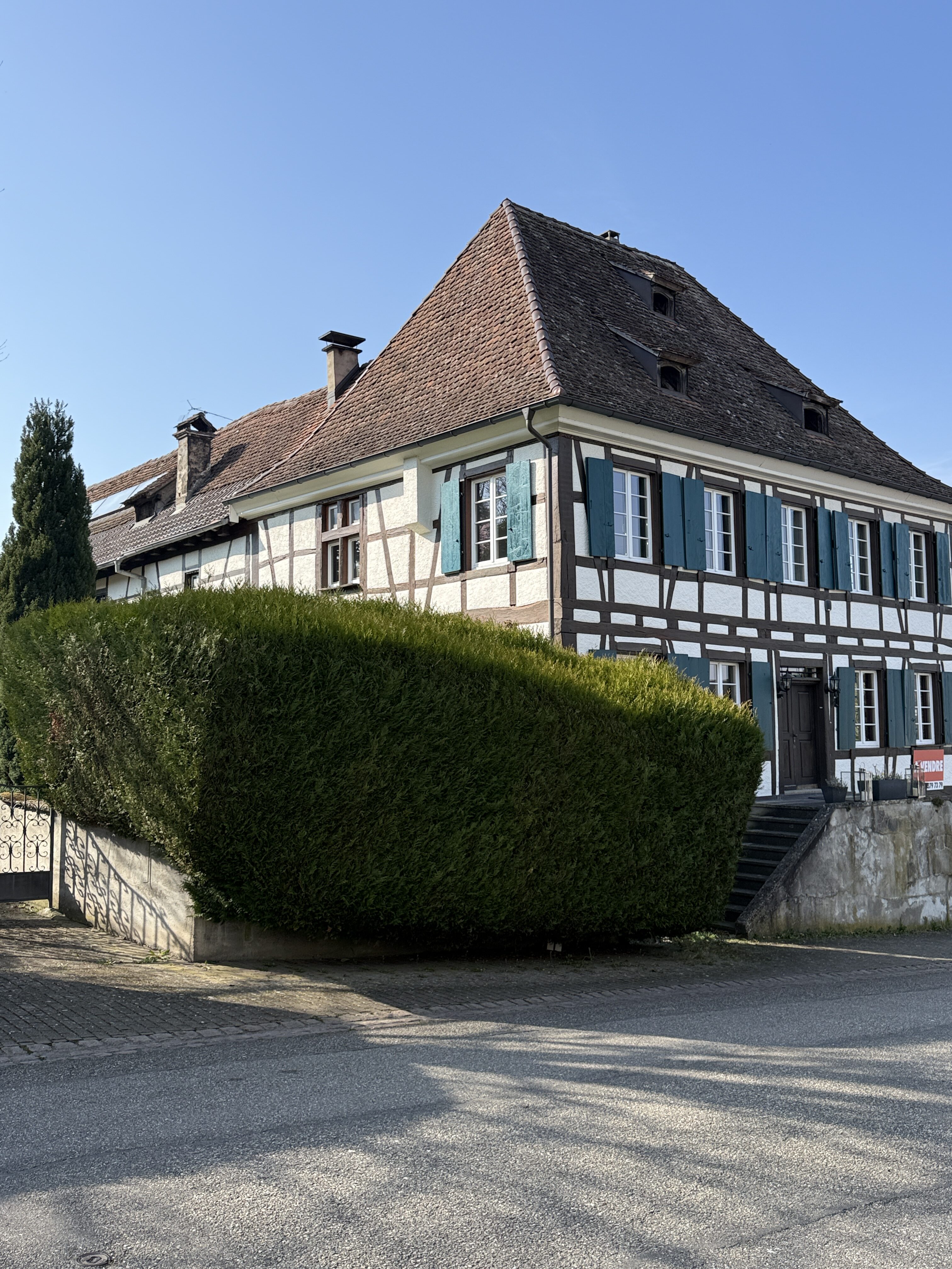 Herrschaftliches Fachwerkhaus im Kern von Leymen mit ca. 210 m² Wohnfläche und angrenzender Scheune, fachmännisch mit ökologischen Materialien renoviert. Das Haus bietet einen großzügigen Wohnbereich von ca. 50 m² sowie eine Küche mit Essbereich von ca. 20 m². Es verfügt über insgesamt 6 Zimmer, darunter eine Masterbedroom, sowie 2 Badezimmer. Hohe Decken, originalem Holzdielenboden, zahlreiche Fenster, eine Holzheizung und mehrere Kamine verleihen dem Haus eine besondere Atmosphäre – eine rundum gelungene „Alt-Neu“-Renovierung. Der Dachboden ist leicht ausbaubar und bietet ein zusätzliches Potenzial. Das Untergeschoss mit hohen Decken umfasst einen Keller, einen Weinkeller, einen Heizraum (Holzheizung mit Kamin sowie Solaranlage für Warmwasser) und bietet einen direkten Zugang nach außen. Zur Immobilie gehören zudem eine Garage sowie ein wunderschön angelegter und gepflegter Garten mit ca. 11 Ar Fläche. Dieser verfügt über eine herrliche überdachte Terrasse, sonnige Bereiche, eine Sauna, ein nordisches Bad sowie ein Nebengebäude mit zusätzlichem Stauraum und Dachboden. Die angrenzende Scheune bietet ein enormes Ausbaupotenzial (2 bis 3 Wohnungen möglich). Die Lage ist zentral in Leymen: Schule, Geschäfte, Restaurants sowie die Tramlinie 10 in Richtung Basel sind bequem zu Fuß erreichbar. Ein wirklich einzigartiges Haus mit viel Charakter in perfektem Zustand – ideal für eine Familie, für Gäste, Haustiere und Naturliebhaber. Auch bestens geeignet für ein B&B, Airbnb, Büros oder freiberufliche Tätigkeiten. Kurz gesagt: Eine außergewöhnliche Immobilie mit 6 Zimmern, 2 Bädern, Keller, Garten, Garage und Terrassen, die Sie an der Schweizer Grenze erwartet. Schreiben Sie das nächste Kapitel Ihrer Geschichte in diesem besonderen Anwesen. Eine seltene Gelegenheit in der Region – ein echtes kleines Paradies!